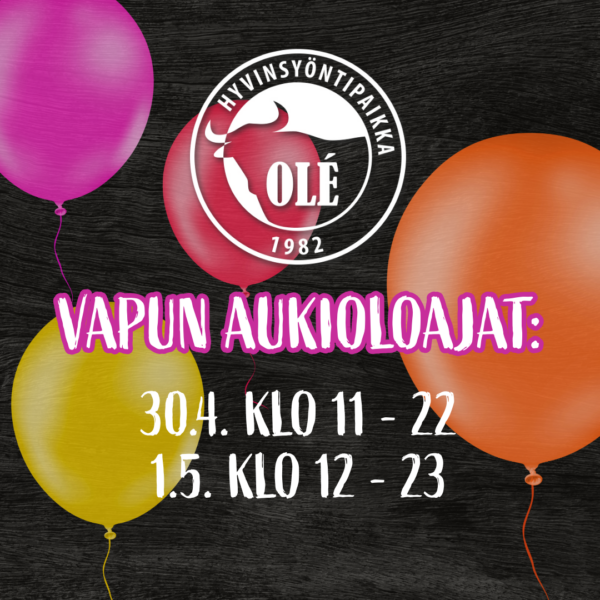 Palvelemme vappuaattona 30.4. klo 11 – 22 ja