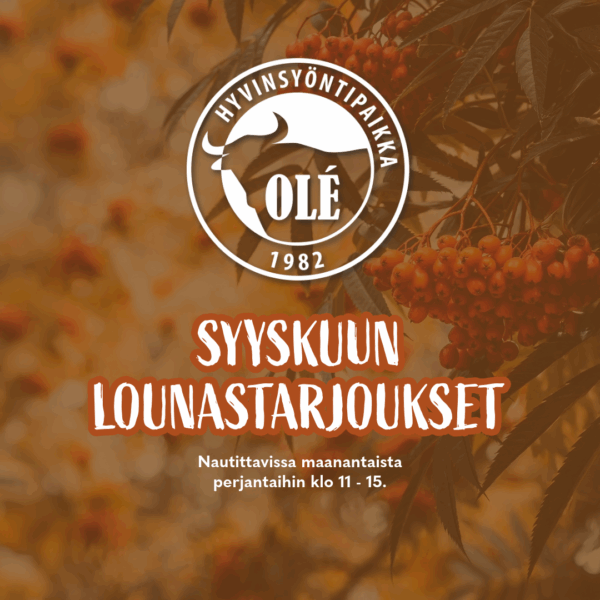 Lounastarjoukset ovat nautittavissa syyskuun ajan maanantaista perjantaihin klo 11 – 15.